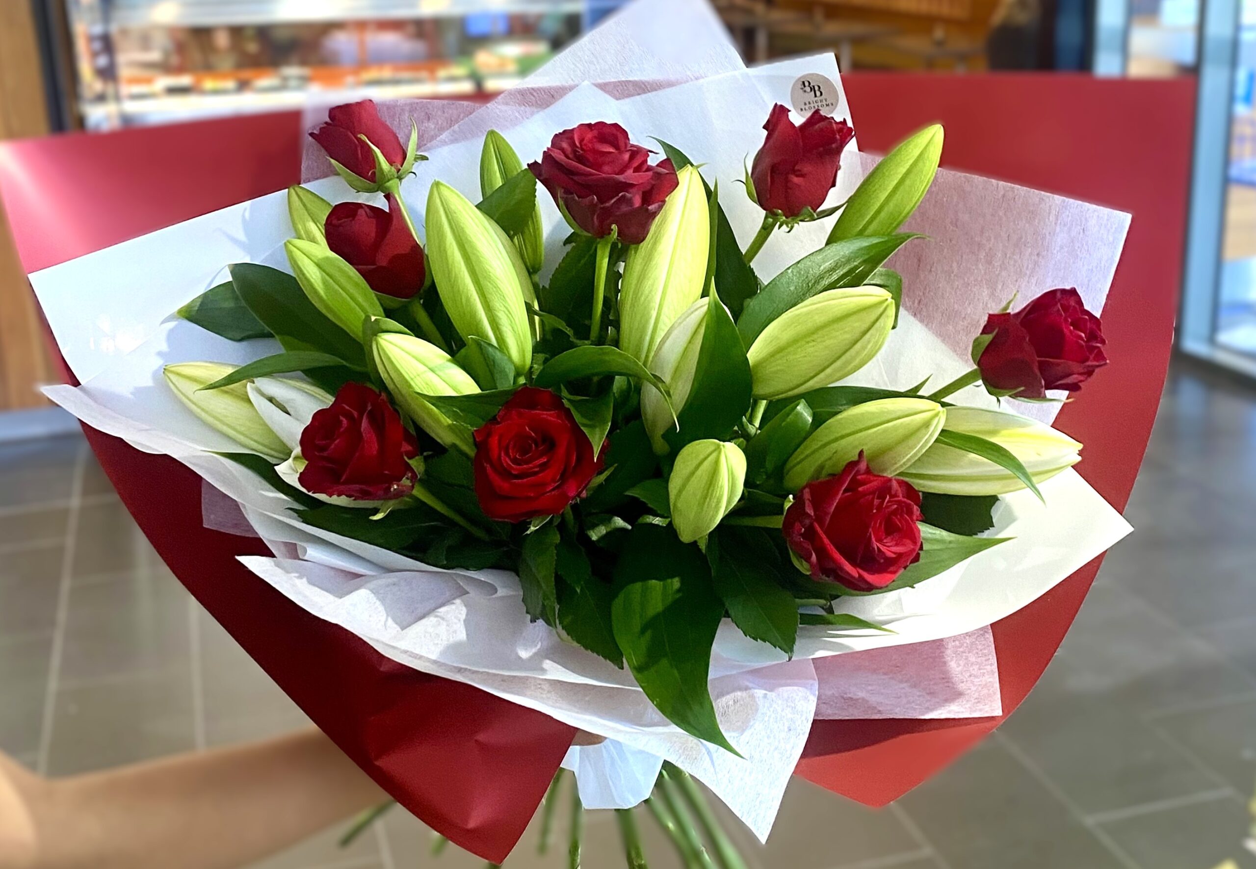 This bouquet features 8 stems of premium red roses paired with white Oriental lily, wrapped elegantly for that special someone. Perfect for Valentine’s Day, anniversaries, birthdays or any moment you want to make someone feel truly special.